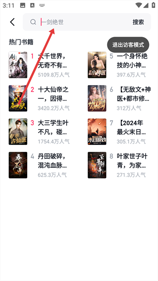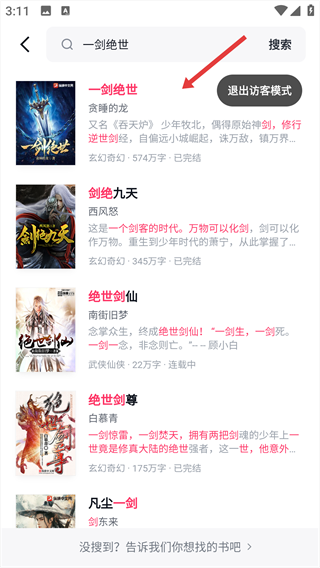 2、进入搜索界面,在输入框中填写小说名称,进行搜索。