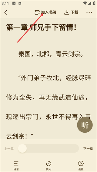 4、进入阅读页面,点击“加入书架”按钮将小说收藏至个人书架。