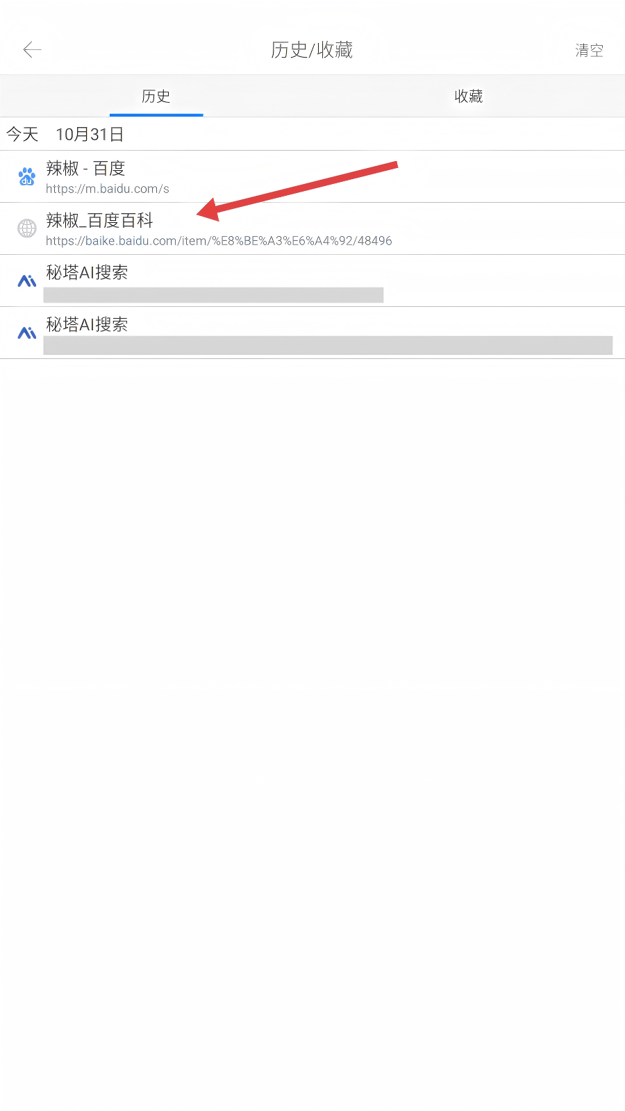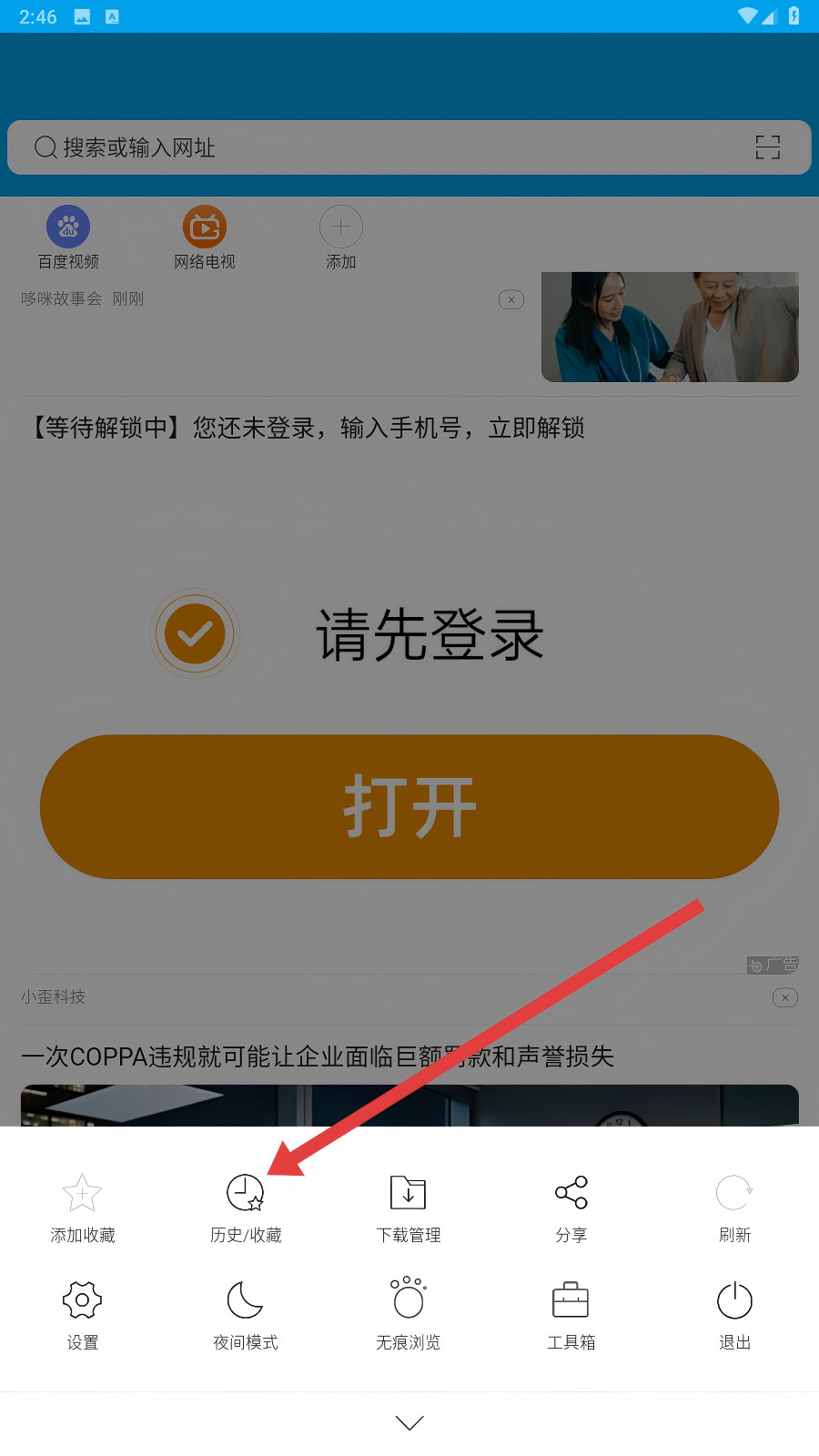 2、接着我们点击【历史或收藏】按键,可以查看历史记录和收藏列表呢。