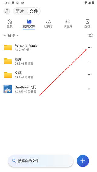 2、在我的文件页面找到目标文件夹,点击其右侧的三点图标弹出操作菜单。