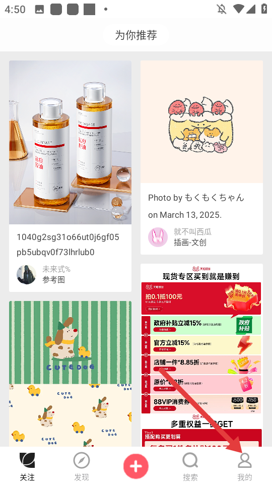 1、打开花瓣app,进入发现界面可以看到各种图片分享
