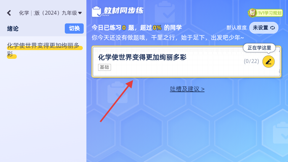 1、进入教材同步练模块,选择章节,准备开始练习。
