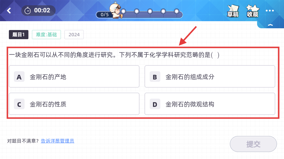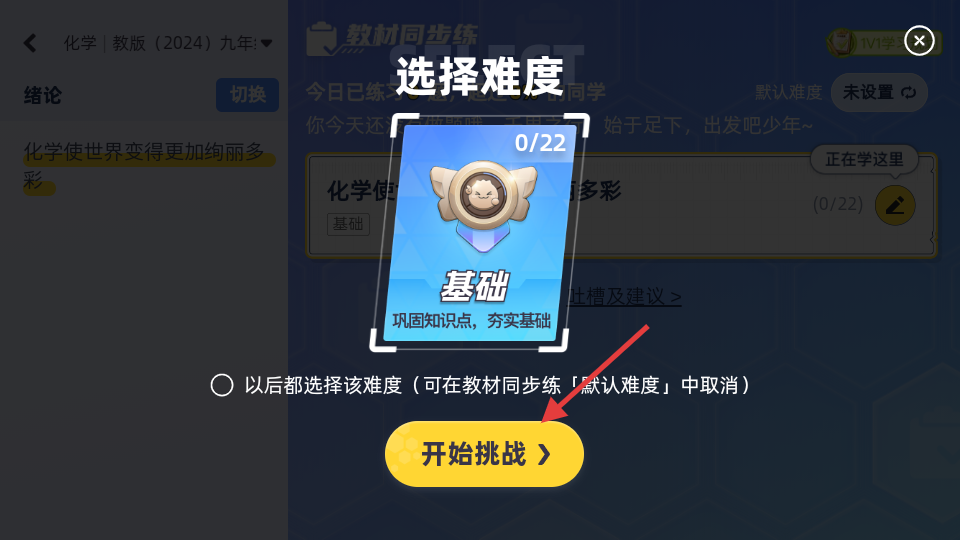 2、选择练习难度,点击“开始挑战”,进入答题页面。