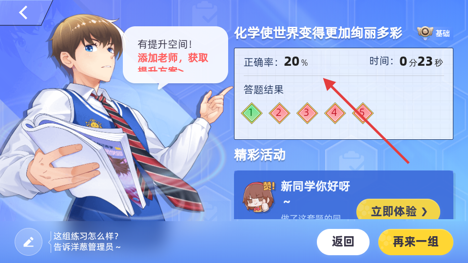4、查看答题结果,包括正确率、答题时间等,根据结果进行针对性复习或再练一组。