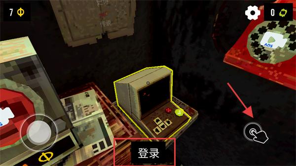 1、利用左下角【移动】按钮,进行角色的移动,可以操纵角色与场景中的老虎机互动。