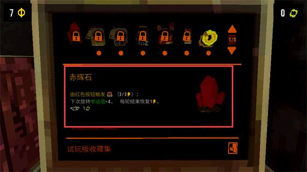 3、查看【赤辉石】提示,了解其触发条件与效果,后续通过红色按钮触发该道具推进流程。