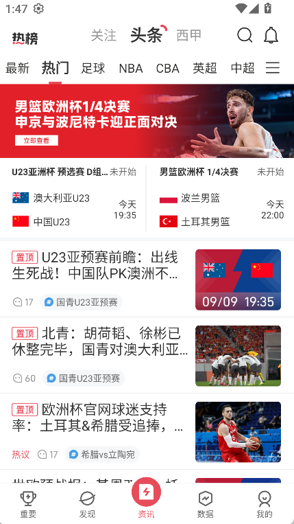 2、资讯浏览功能,集中呈现热门体育新闻与赛事动态。