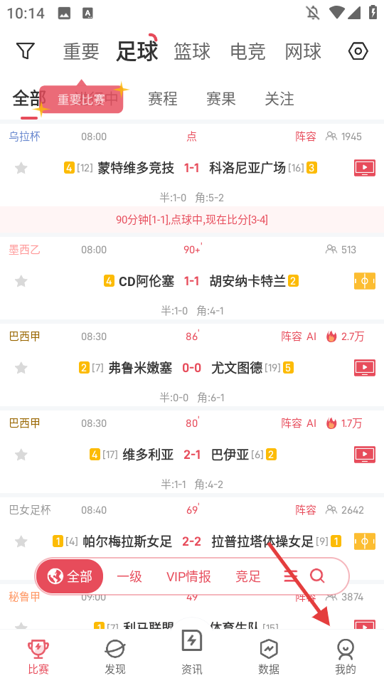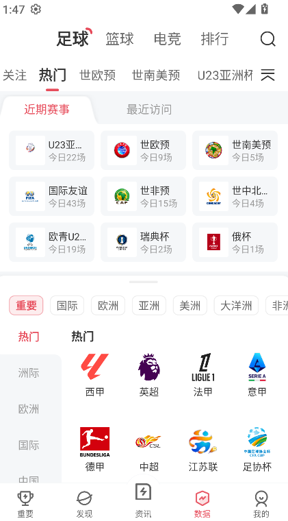 1、赛事页面分类明确,重要比赛信息一目了然,方便查找关注。