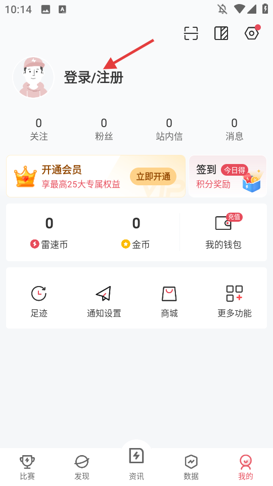 2、在个人页面点击【登录/注册】,进入登录注册界面。