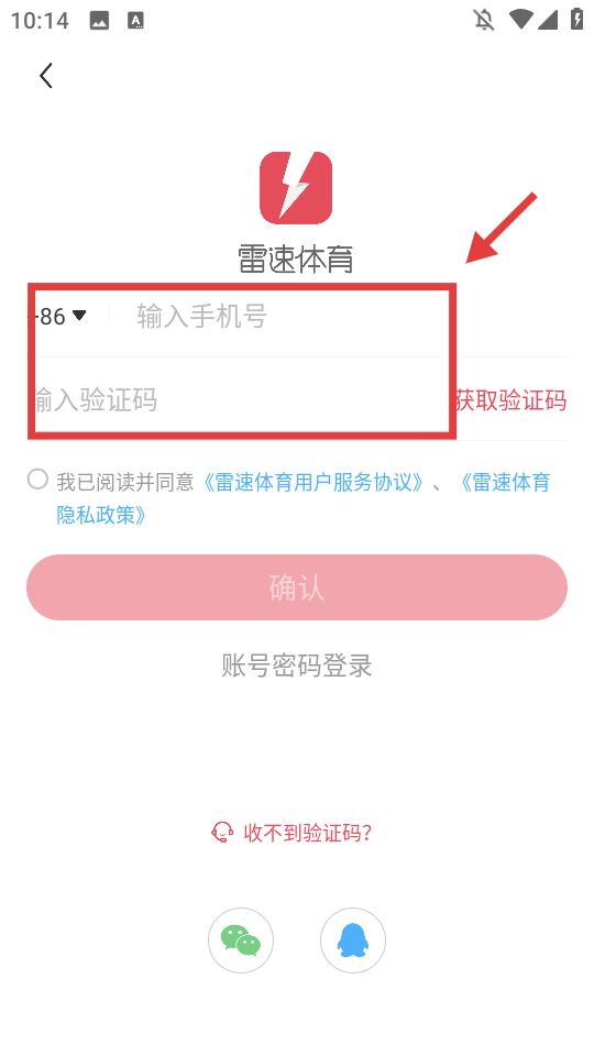 4、在验证码登录页面输入手机号,获取并输入验证码,勾选同意协议后点击【确认】。