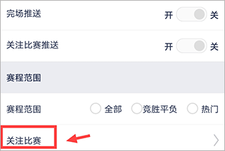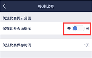 3、点击仅在比分页面提示的开关,即可开启此功能。