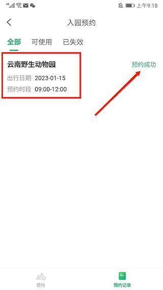 5、在 “预约记录” 页面,显示预约景区和时间,状态为 “预约成功”。