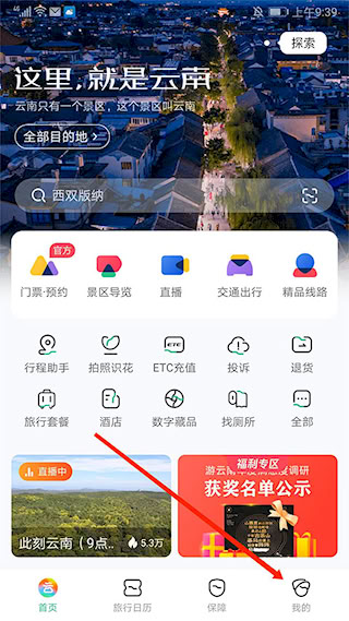 1、打开 “游云南 APP”,点击右下角 “我的”。