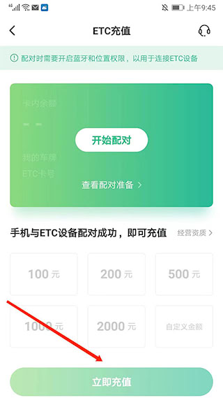 3、配对成功后,选择充值金额并点击 “立即充值”。
