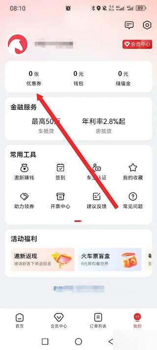 3、进入优惠券页面,即可查看已获取的优惠券。