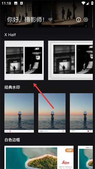 1、打开边框水印大师,选择【X-Half】里的排版模板哦。