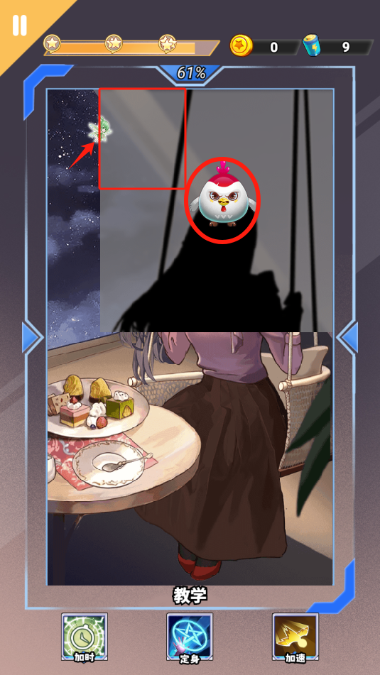 2、游戏是点击按住滑动小精灵移动,画出一段范围,一点点扩大占据范围,要避免与小鸡接触。