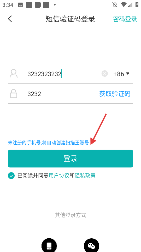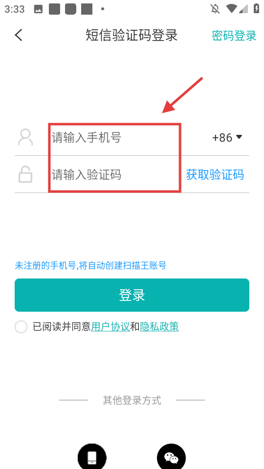 2、点击【登录/注册】,进入短信验证码登录页面。