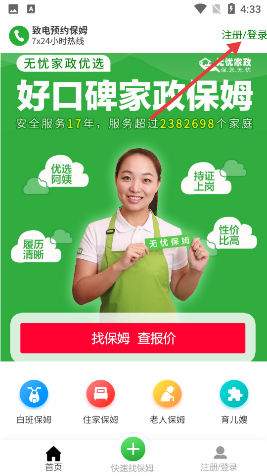 2、保姆筛选:通过找保姆功能按地区类型筛选,查看门店锦旗评价选择优质服务,或直接前往附近门店线下挑选。