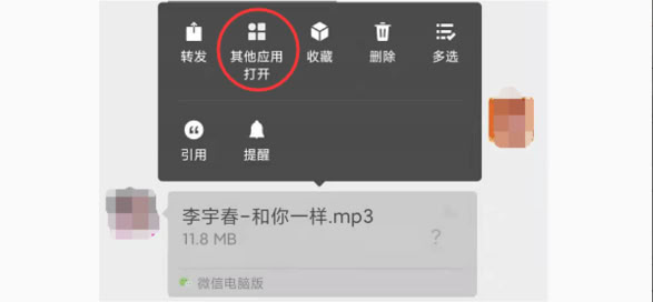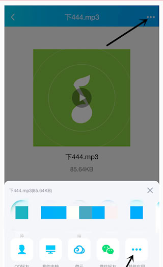 首先到微信或者QQ找到接收的音频文件,点击打开播放音频文件选择右上角或者长按显示出更多按钮。