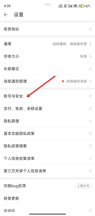 2、找到并点击【账号与安全】选项,进入后就能看到注销账号的入口啦。