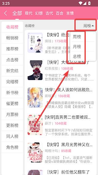 3、右上角还能选择【周榜】【月榜】【总榜】