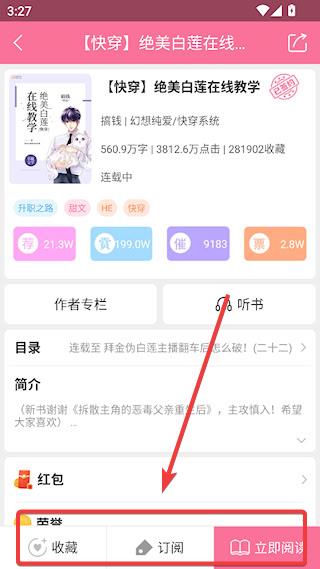 4、选好心仪的书籍,点击进入,可以立即阅读、一键收藏和订阅