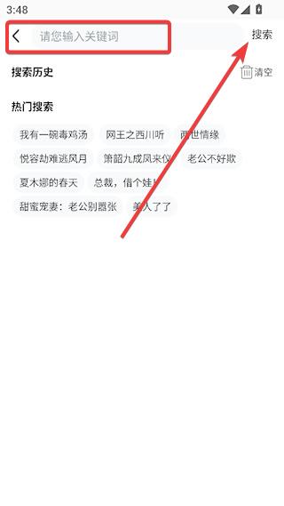 2、点击搜索框,可以根据关键词搜索需要的作品资源