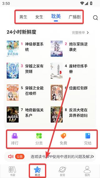 3、【精选】可以看到不同的分类,可以根据自己的喜好选择