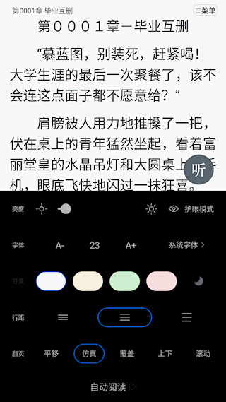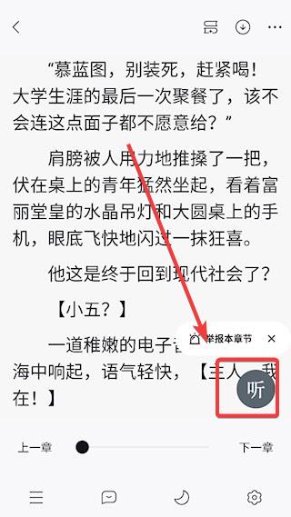 5、进入章节就可直接阅读,还可以选择听书模式解放双眼和双手