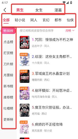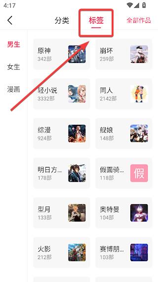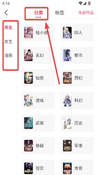 2、点击【分类】,可以看到详细的分类,支持根据标签选择,满足不同阅读爱好者