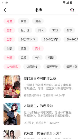 2、拥有海量小说阅读资源,且分类十分详细,便于读者快速找到感兴趣的内容。