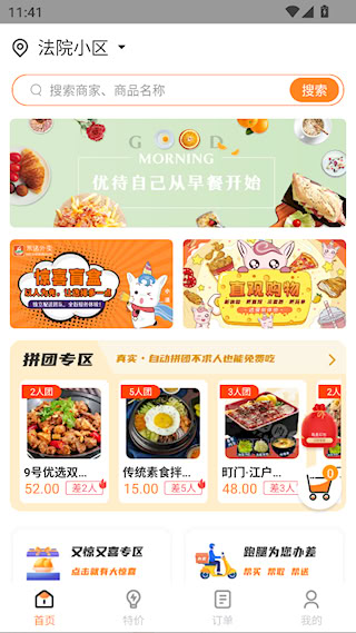 2、选好货输入定位之后就能点餐啦,找到【拼团专区】