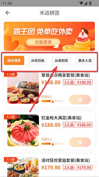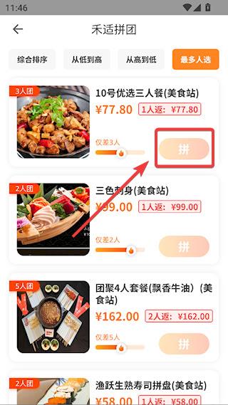 3、找到心仪的餐厅和餐食,点击【拼】即可