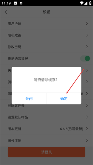3、在设置页面,点击【清除缓存】选项,弹出“是否清除缓存?”的确认对话框。
