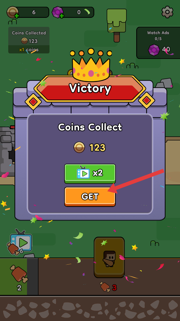 4、将敌人消灭以及破坏敌人城堡后即可通关,点击【GET】回到游戏主界面对下一关发起进攻。