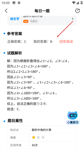 4、提交答案后进入结果页,可查看【参考答案】及【试题解析】,了解题目知识点与解题逻辑。