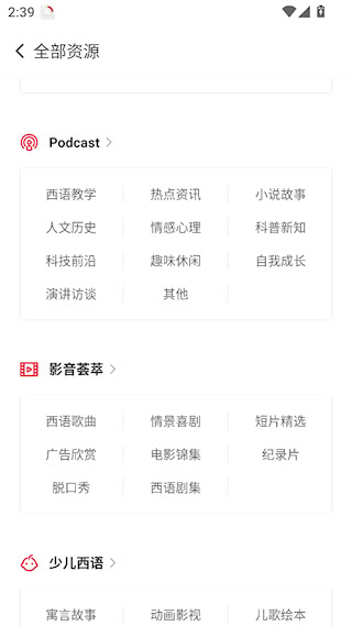 2、汇集经典教材,涵盖听力、口语、词汇、语法及 DELE、专四、专八备考资料,全方位满足学习需求。