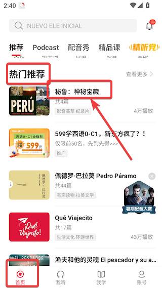 3、返回首页,可以查看热门推荐,找到感兴趣的内容,以秘鲁:神秘宝藏为例