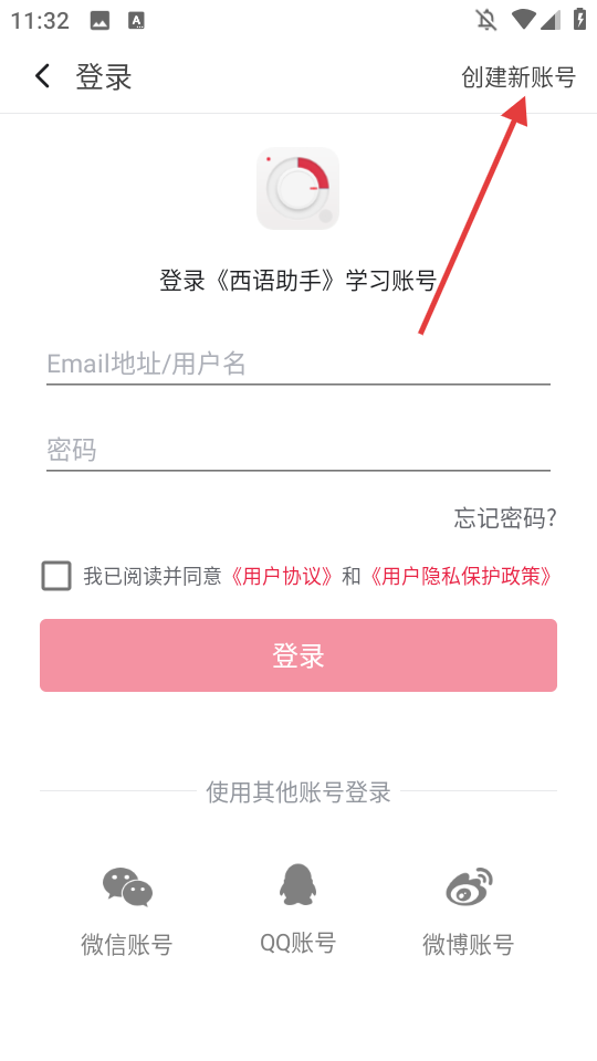 2、点击右上角【创建新账号】,进入注册页面。