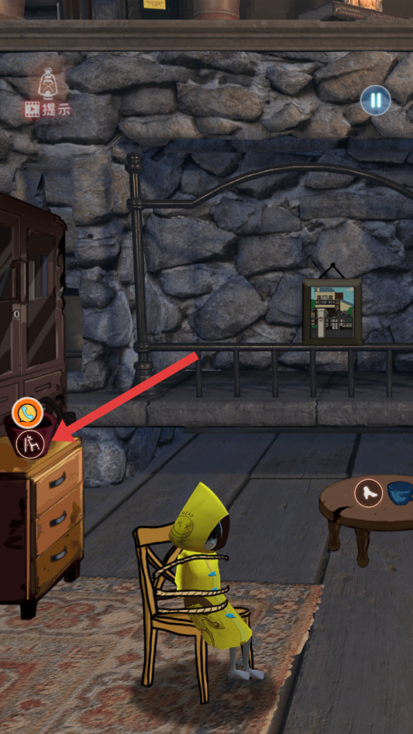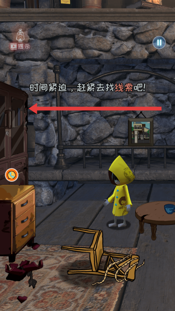 3、解开绳子后,向左滑动屏幕,查找更多线索。