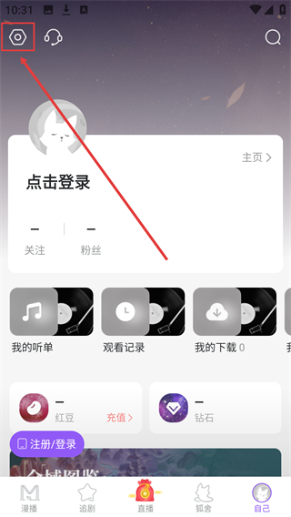 1、在广播剧页面底部找到【自己】入口,点击该入口可进入个人中心页面。