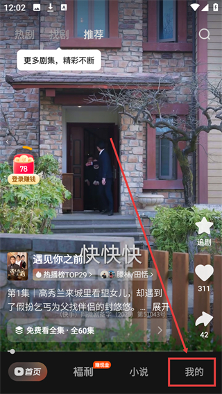 1、在剧集播放页,点击底部【我的】按钮可进入个人中心。