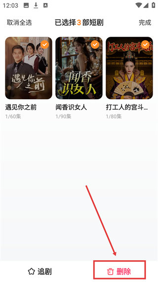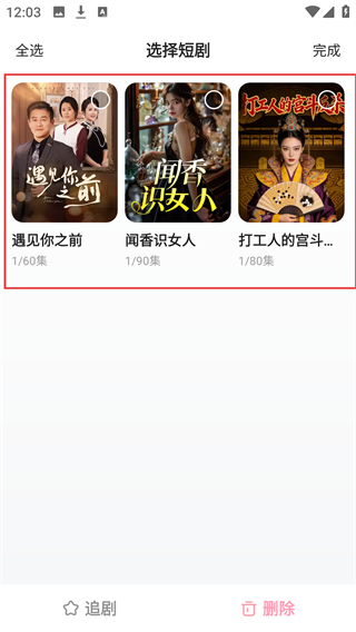 3、在【选择短剧】界面,可看到已观看的剧集列表。
