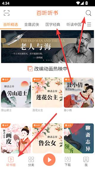 1、下载安装后进入软件首页,找到活手动搜索想要收听的有声书