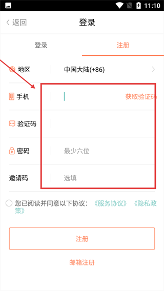 2、点击“注册”按钮,进入账号注册界面。