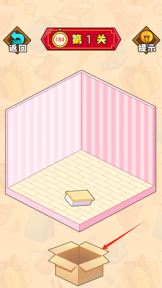 3、点击这个箱子,在弹出来的所有家具,在184秒内,完成整理好位置。