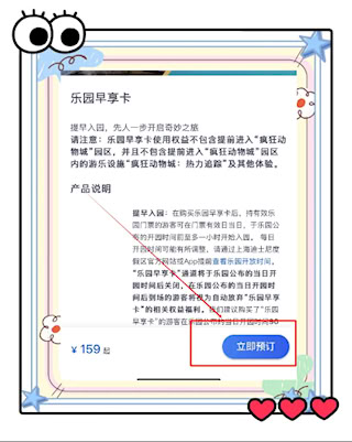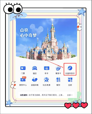 4、进入对应页面:于首页点 “乐园早享卡”,虽标价,但绑票免费。
