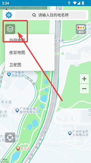 2、点击左上角图中所示,可以选择不同的地图,当前为白昼地图