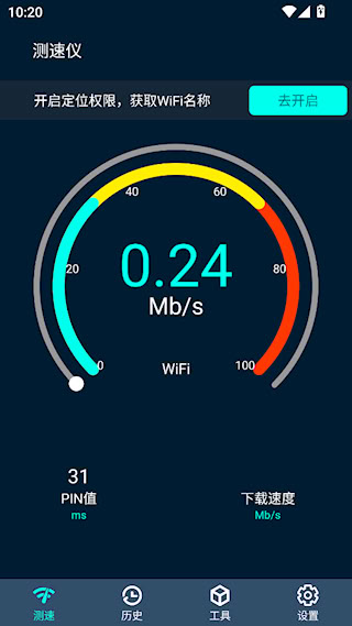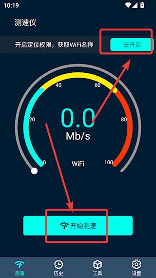 1、开启定位权限,获取WiFi名称后,就能直接开始测速